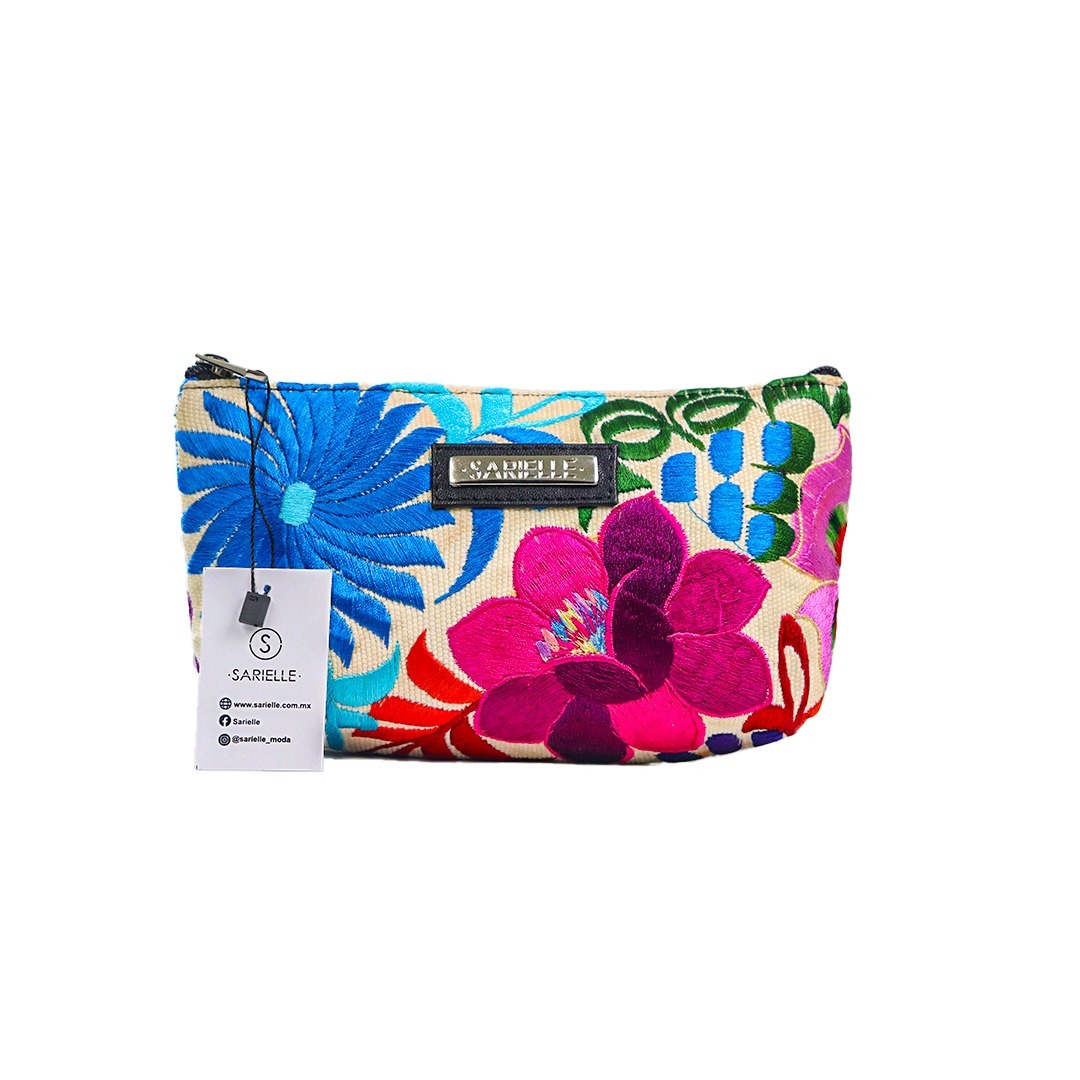 - Obra de Arte Textil: El frente es un deslumbrante despliegue de bordado artesanal multicolor. Recuerda: Cada cosmetiquera Nicté es única. El diseño y la combinación de colores del bordado son irrepetibles, lo que garantiza una pieza exclusiva.